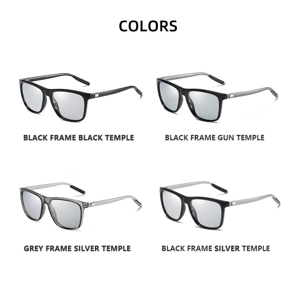 Aielbro เปลี่ยนสี กรอบสีเทา โฟโตโครมิก โพลาไรซ์ แว่นกันแดด ผู้ชาย สี่เหลี่ยม คลาสสิก กิ้งก่า เปลี่ยนสี เลนส์ แว่นตา
