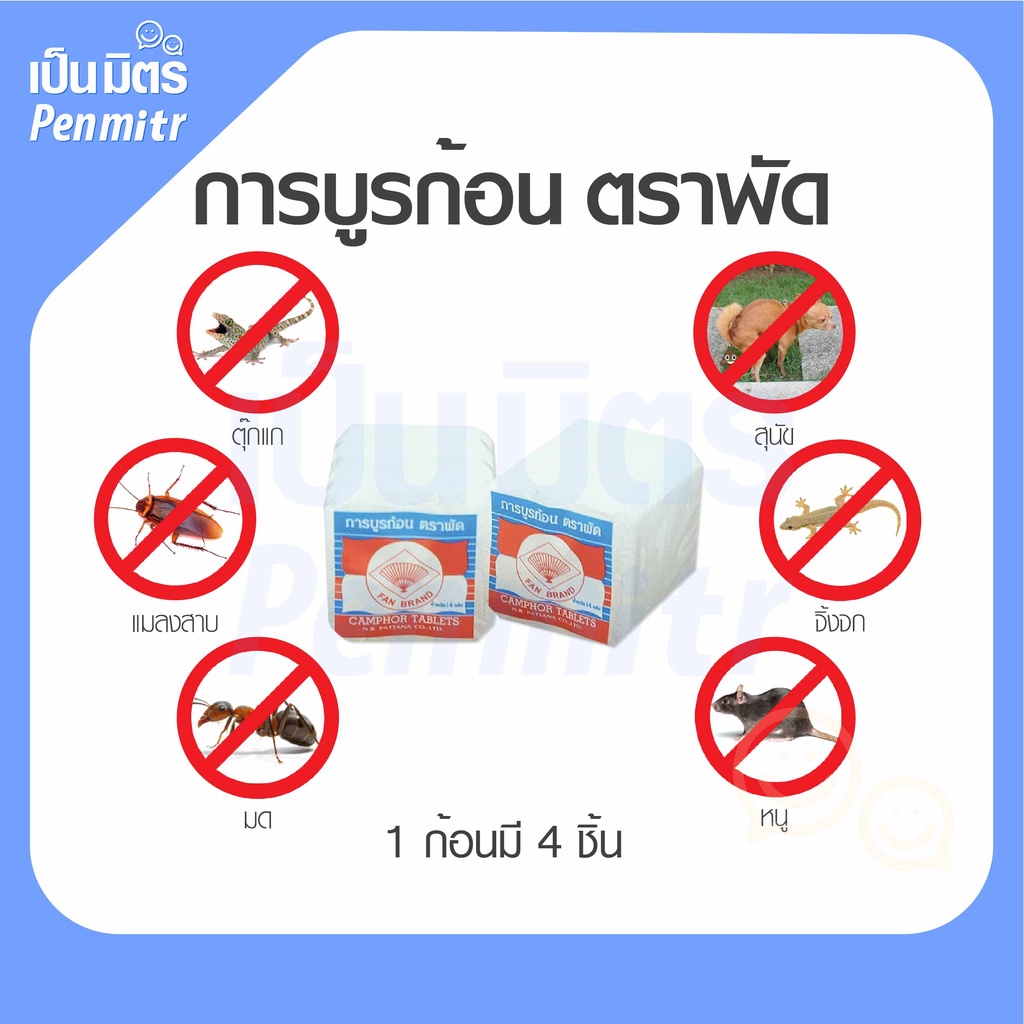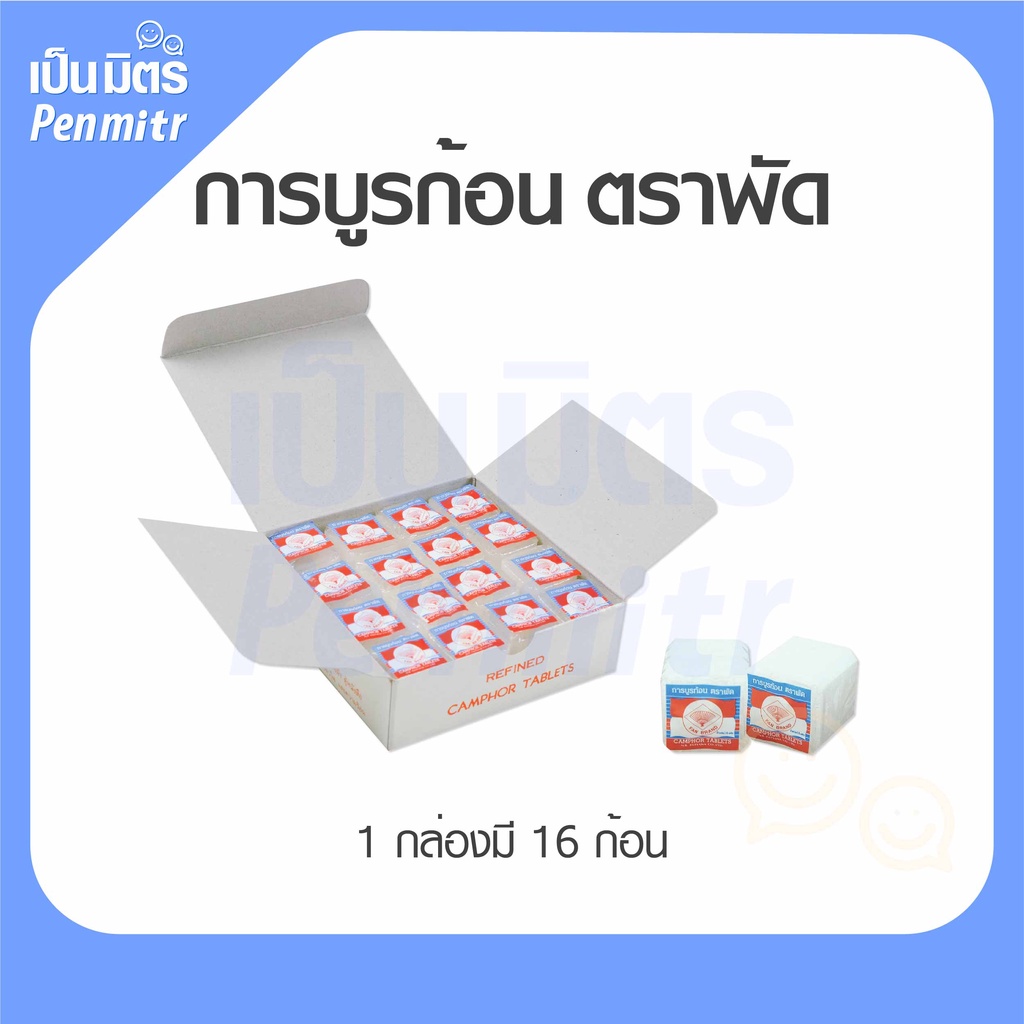 การบูรก้อน ตราพัด (ก้อนเล็ก กล่องขาว) Camphor การบูรแท้ การบูรหอม อย่างดี ดับกลิ่น ไล่แมลง การะบูร เป็นมิตร Penmitr