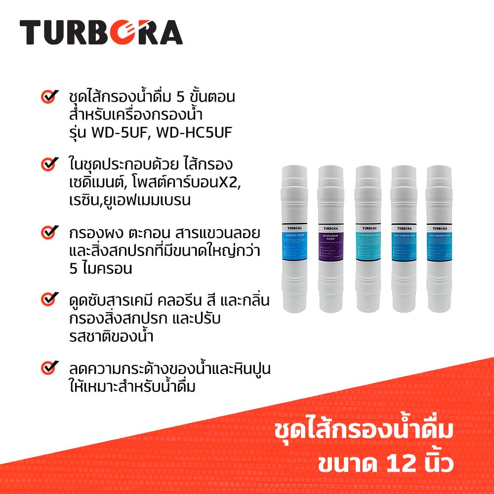 (ส่งฟรี) TURBORA ชุดไส้กรองน้ำดื่ม 5 ขั้นตอน (5 ชิ้น) สำหรับรุ่น WD-5UF, WD-HC5UF
