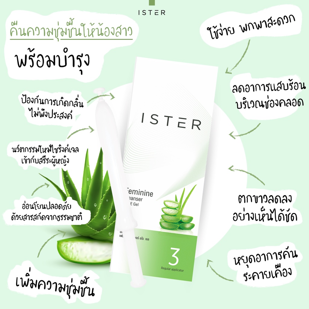 ISTER อีสเทอร์ สูตรสีเขียว ALOE VERA 4 กล่อง (+แถม 3 หลอด) ผลิตภัณฑ์ทำความสะอาดจุดซ่อนเร้น ปรับสมดุลน้องสาว