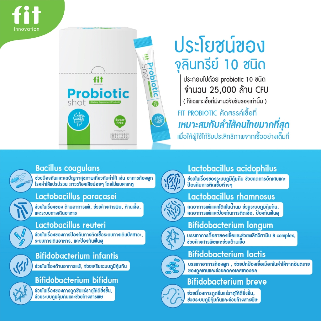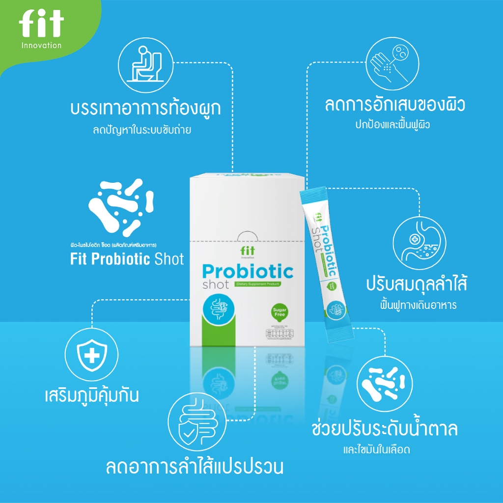 Fit-Probiotic shotฟิต โพรไบโอติก ช็อต ปรับสมดุลในลำไส้ แบบช็อต 10 ซอง/กล่อง
