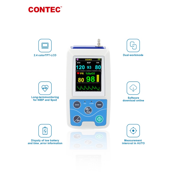 Contec PM50 เครื่องวัดอัตราชีพจร Patient Monitor NIBP SPO2 24 ชั่วโมง ซอฟต์แวร์ PC SPO2+NIBP+PR