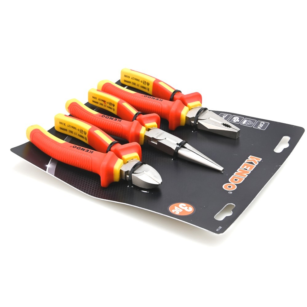 KENDO 85134 ชุดคีมผสม ชุบโครเมียม VDE 3 ตัวชุด (กันไฟ)| SKC OFFICIAL