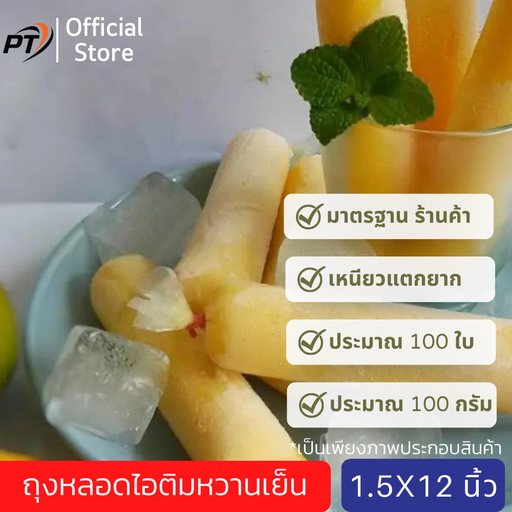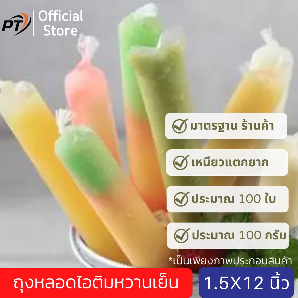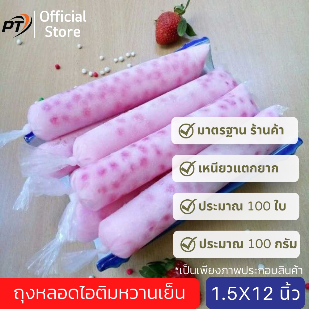 [เก็บคูปองส่งฟรีด้วย](ประมาณ 100g/80-90ใบ) ขนาด 1.5*12 นิ้ว ถุงหลอดไอติมหวานเย็น