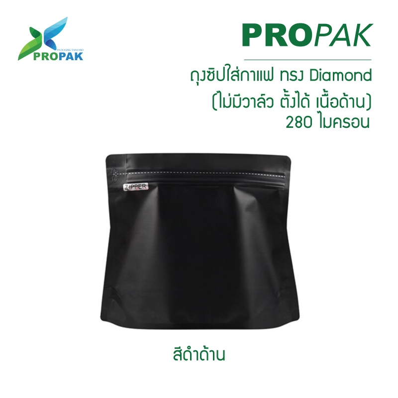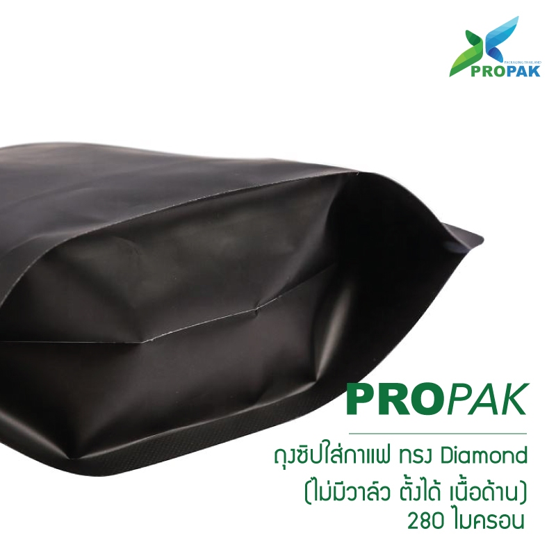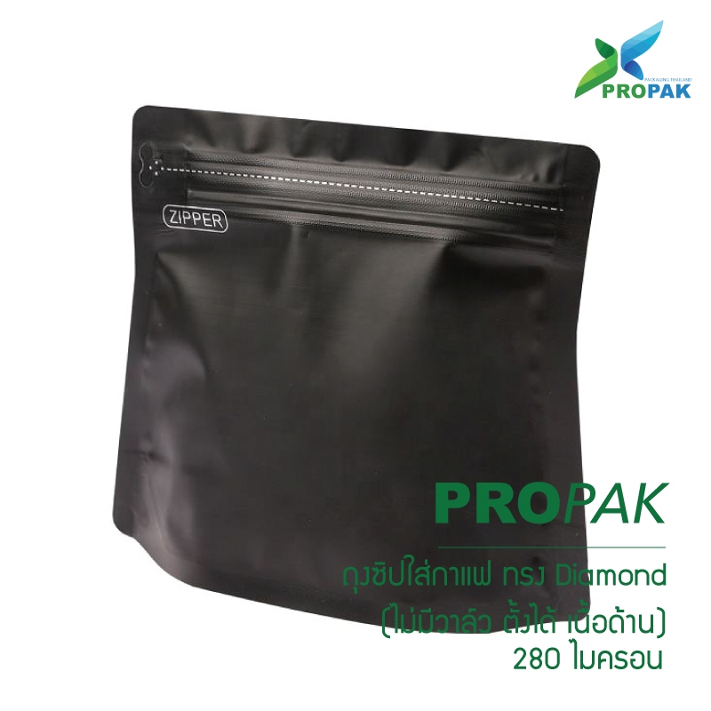 ถุงซิปใส่กาแฟทรง Diamond ก้นตั้งได้ ไม่มีวาล์ว