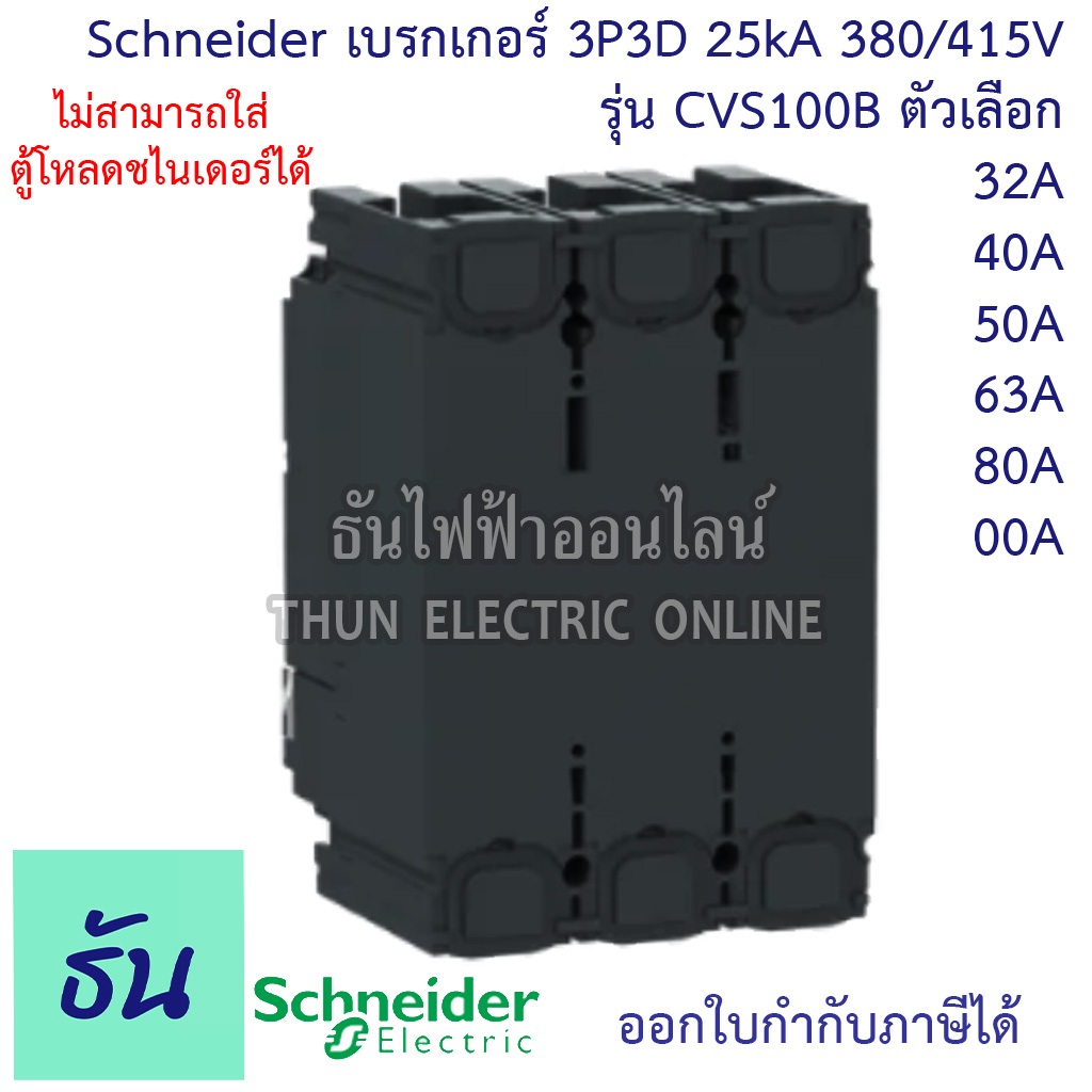 Schneider เบรกเกอร์ CVS100B 3P3D 25kA 380/415V ตัวเลือก 32A 40A 50A 63A 80A 100A MCCB เบรกเกอร์ 3 เฟส Breaker ธันไฟฟ้า