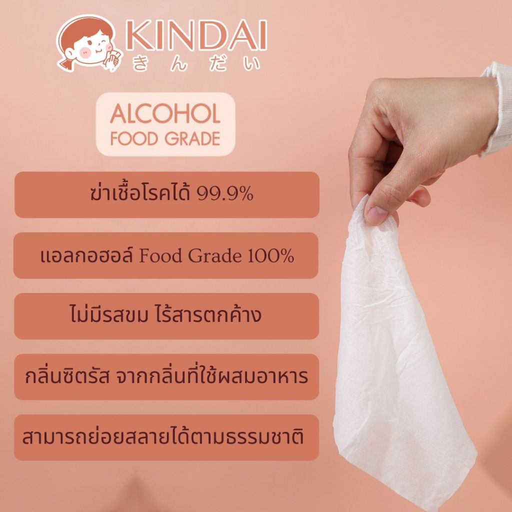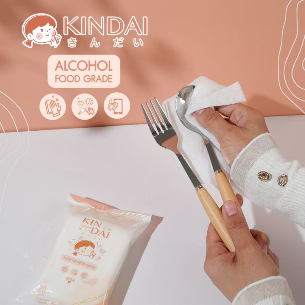 **12ซอง**คินได ทิชชู่เปียกแอลกอฮอล์ ฟูดเกรด Kindai Food Grade Hygienic Wipes x12Units