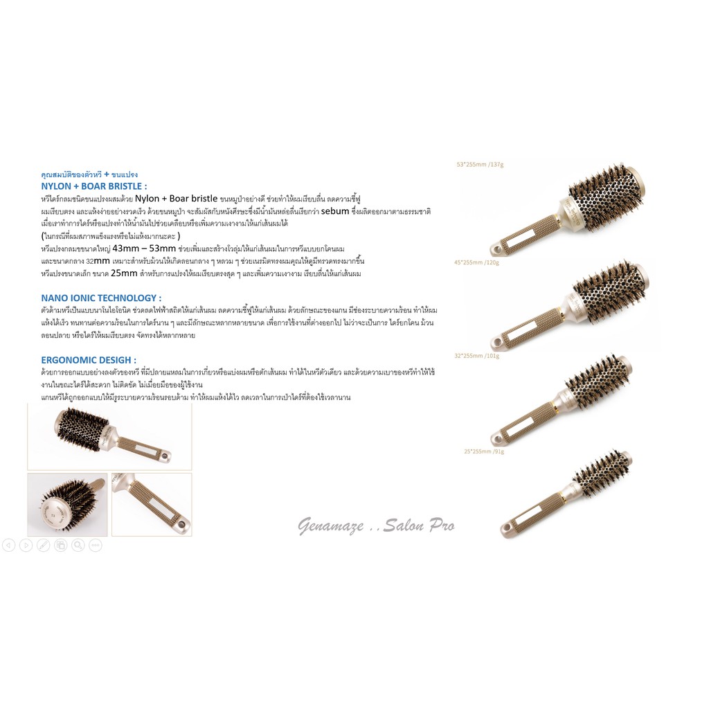 Genamaze Nano ceramic หวีไดร์กลมชนิดขนแปรงผสมNylon ช่วยทำให้ผมเรียบลื่น ลดความชี้ฟู ช่วยเพิ่มโวลุ่มให้แก่เส้นผมขนาด 4 ชิ