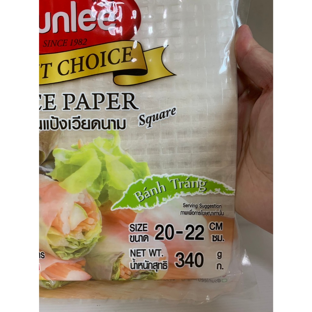 แผ่นแป้งเวียดนาม แบบสี่หลี่ยม ตรา ซันลี ขนาด 20-22 ซม. น้ำหนัก 340 กรัม