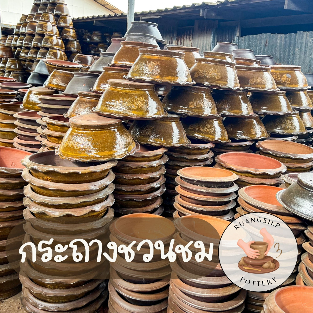 กระถางชวนชม บอนไซ ทรงเตี้ย เจาะรู ลายมังกร ราชบุรี และเคลือบสีดำเลน