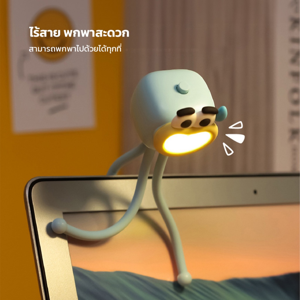 【ลดล้างสต็อกพิเศษ】โคมไฟปลาหมึกมินิ ตกแต่งโต๊ะทำงาน แบบไร้สาย พกพาสะดวก วางมือถือได้