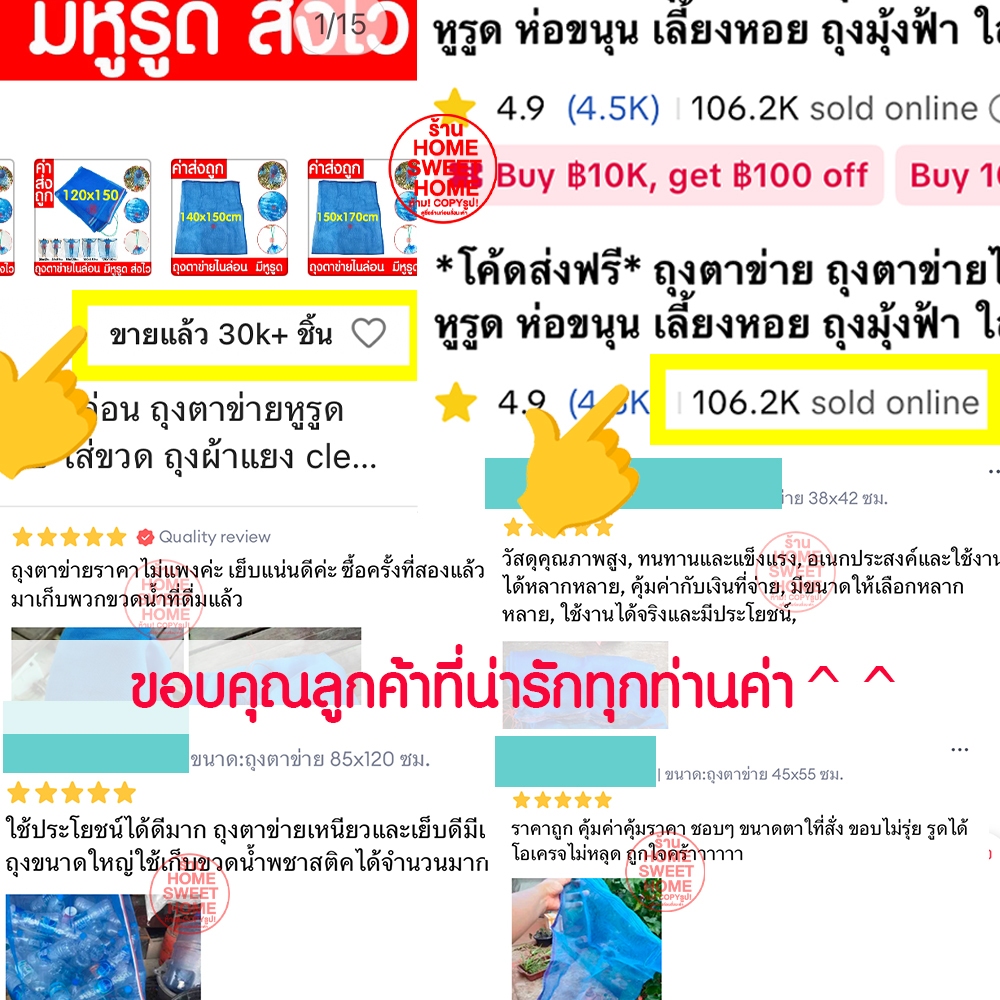 ถุงตาข่าย ถุงตาข่ายไนล่อน ถุงตาข่ายหูรูด ห่อขนุน เลี้ยงหอย ถุงมุ้งฟ้า ใส่ปลา ใส่กบ ใส่ขวด ถุงผ้าแยง clearance