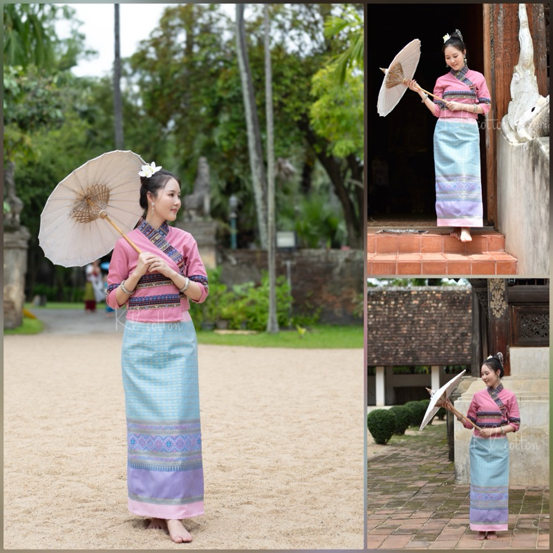 ผ้าถุงอัดกาว ผ้าฝ้ายผสมไหมงานสั่งทอ *เฉพาะผ้าถุง