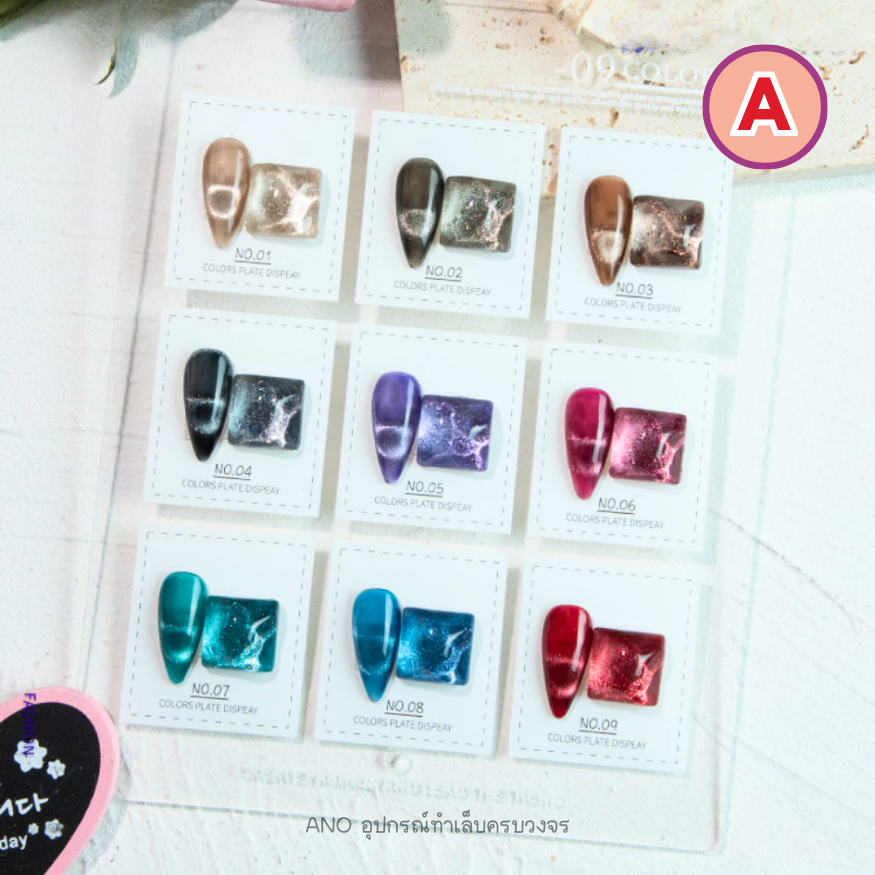 สีเจลลูกแก้ว ยกเซ็ต สีทาเล็บเจล แม่เหล็ก K+ สีเจลฮิตๆ สำหรับร้านทำเล็บชั้นนำ สีเจลแคทอาย 9 ขวด