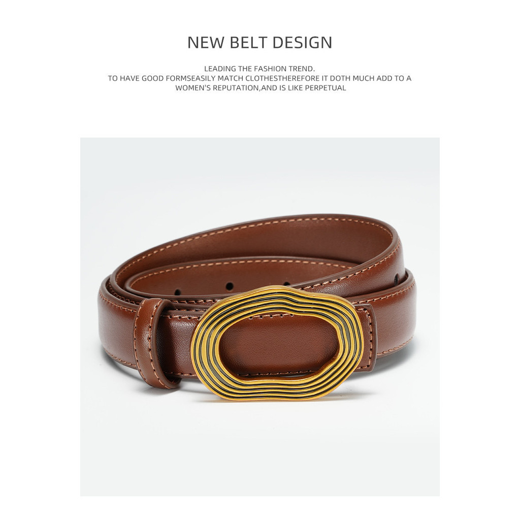 CATHLEEN เข็มขัดสำหรับสุภาพสตรี หนังวัสดุพรีเมี่ยม หรูหรา ตกแต่งด้วยหัวเข็มขัดสีทอง ดีไซน์สวยเข็มขัด
