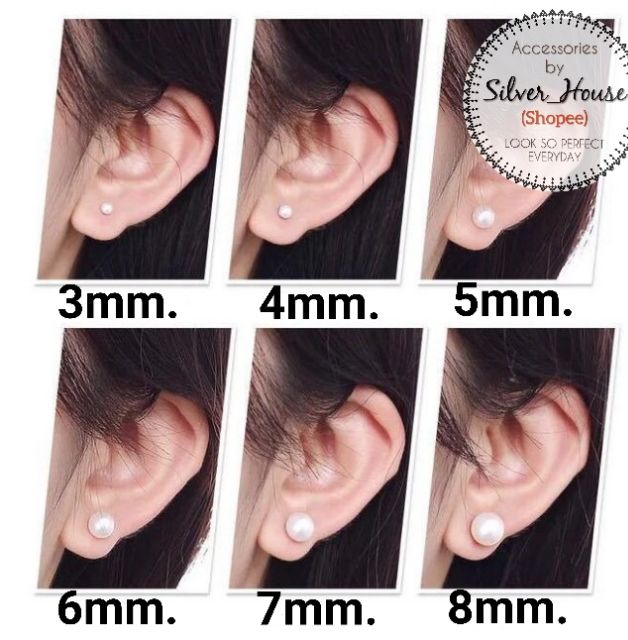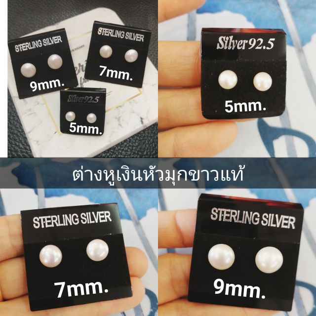 ต่างหูเงินแท้92.5% ต่างหูหัวมุกสีขาวแท้ มุกแท้ มุกสวยมาก มีขนาด4-10mm.