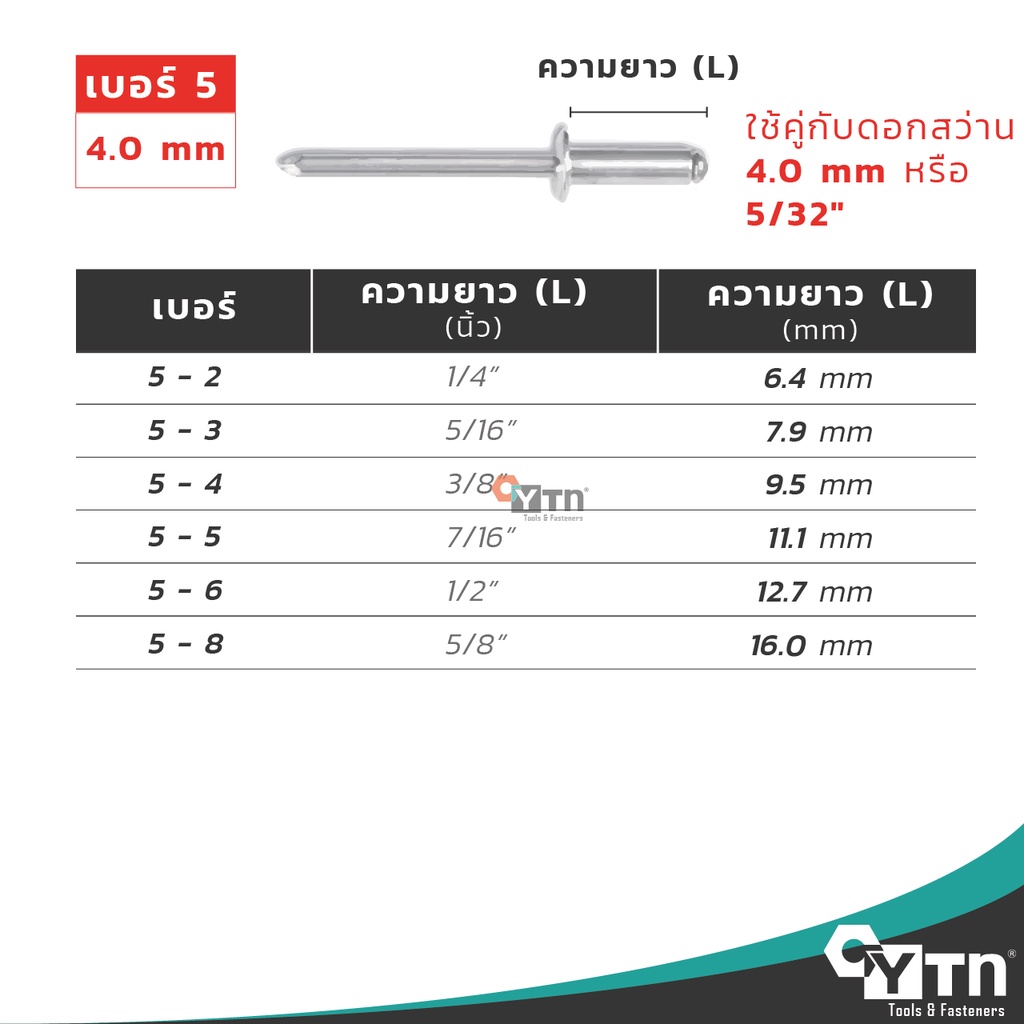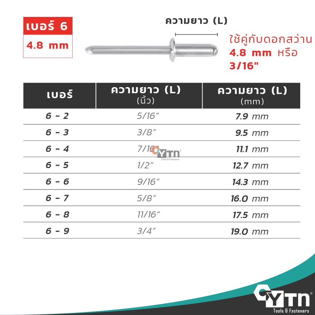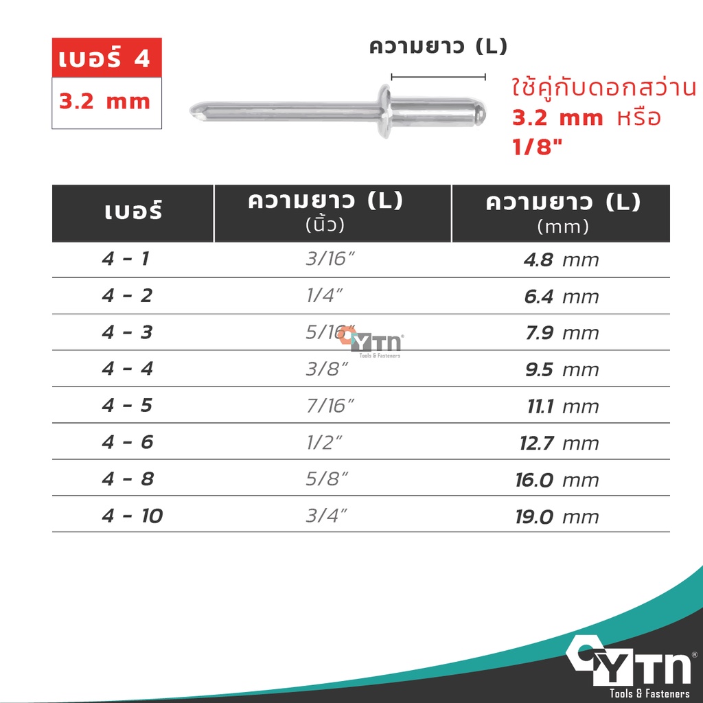 [10ตัว] ลูกรีเวท หมุดย้ำ ตะปูยิง สแตนเลส (มีทุกเบอร์) | SS Blind rivet ปลายท่อมอเตอร์ไซค์
