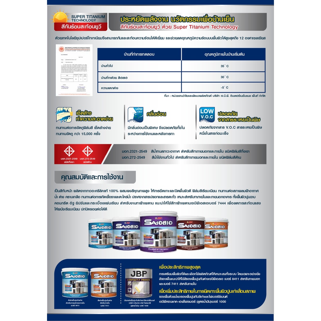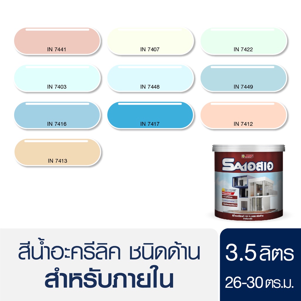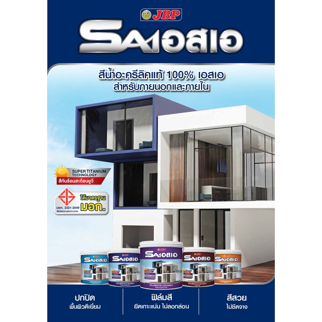 JBP SA สีทาบ้านภายใน ชนิดด้าน ปกปิดพื้นผิวดี สีสวย ไม่ซีดจาง กลิ่นอ่อนปลอดภัย ขนาด 3.5 ลิตร