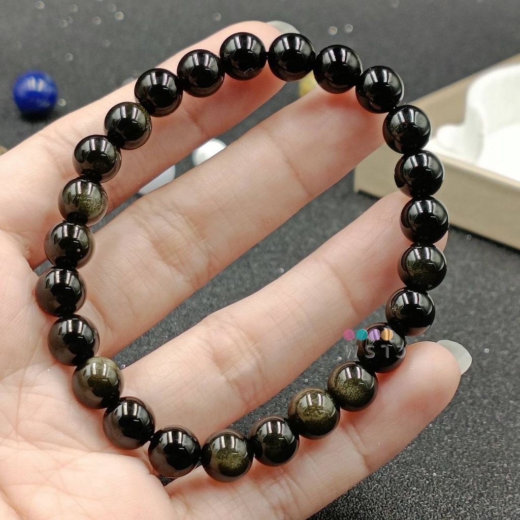 (พราว) หินโกลเด้น ออปซิเดียน Golden Obsidian ขนาด 8 มิล หินแก้ชง ไล่โชคร้าย ผ่านพิธีปลุกเสกและบรรจุพุทธคุณเรียบร้อยแล้ว