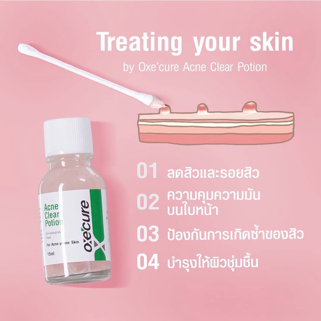 1แถม1 Oxe cure แต้มสิว แป้งน้ำชมพูลดสิว Acne Clear Potion 15 ml จากประเทศญี่ปุ่น