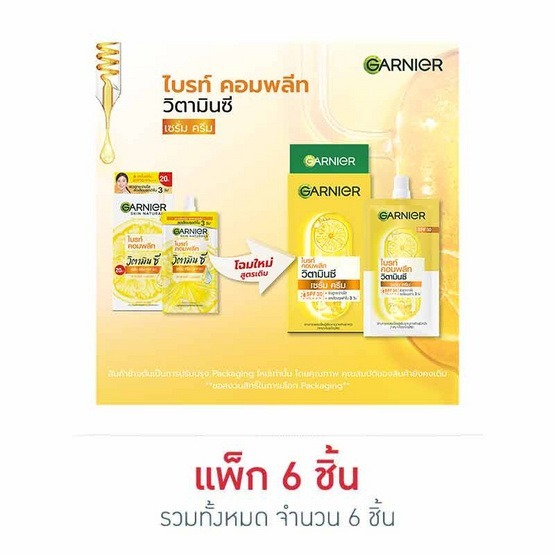 (6ซอง/กล่อง) Garnier การ์นิเย่ ไบรท์ คอมพลีท วิตามินซี เซรั่มครีม SPF30 เหลืองฝาหมุนใหม่ 20บ. [7873]
