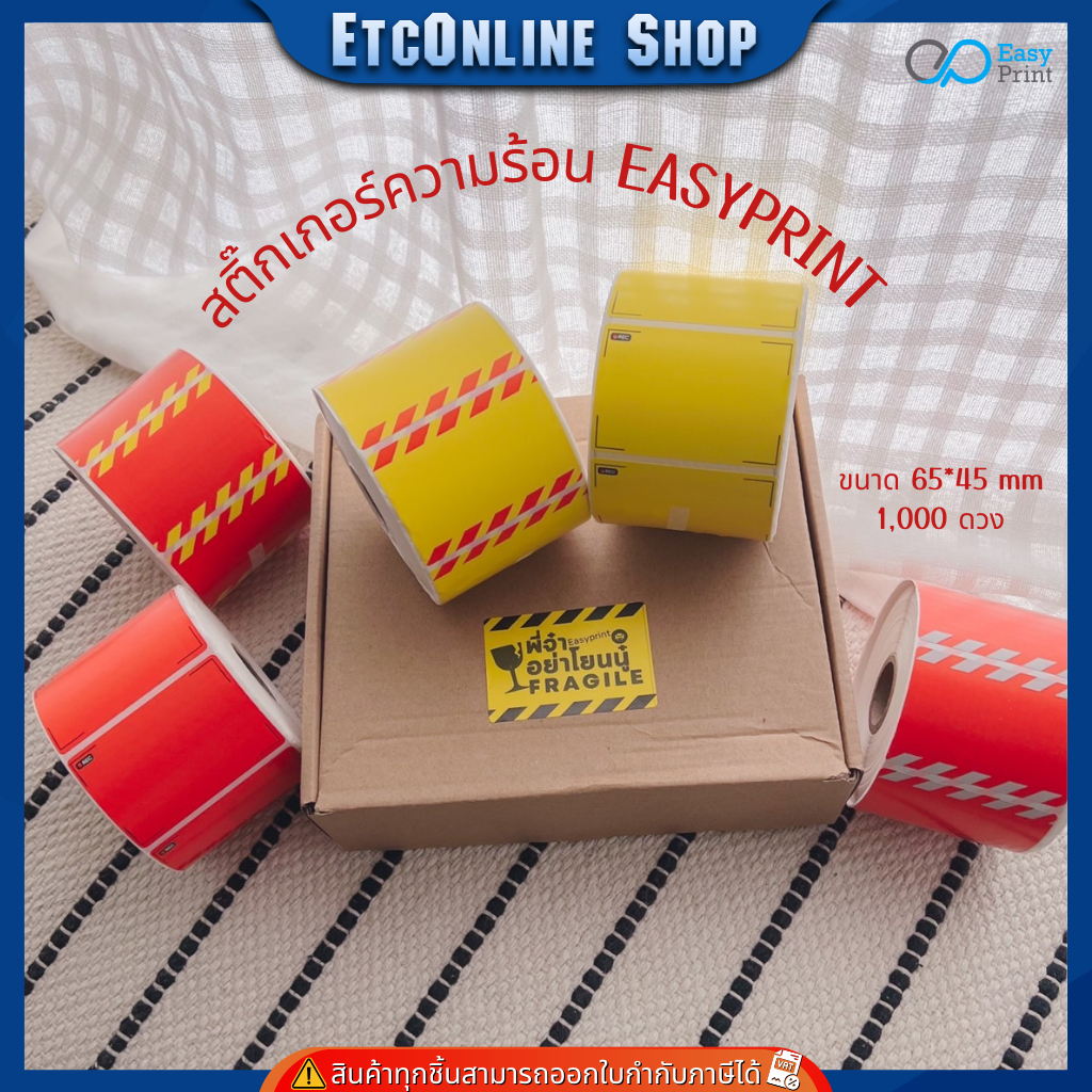 สติกเกอร์ Direct Thermal สำหรับพิมพ์ถ่ายวีดีโอ ระวังแตก ออกแบบได้เองตามความต้องการ 65x45 1000ดวง
