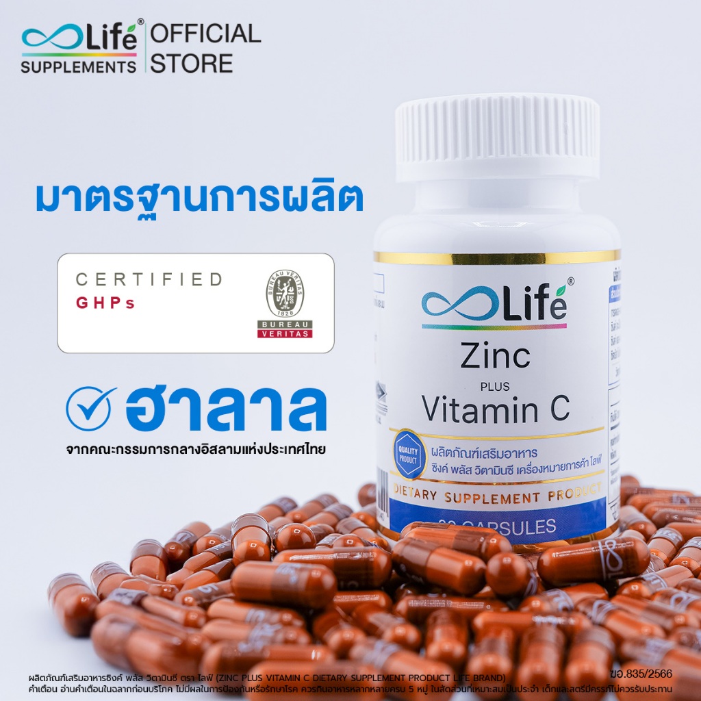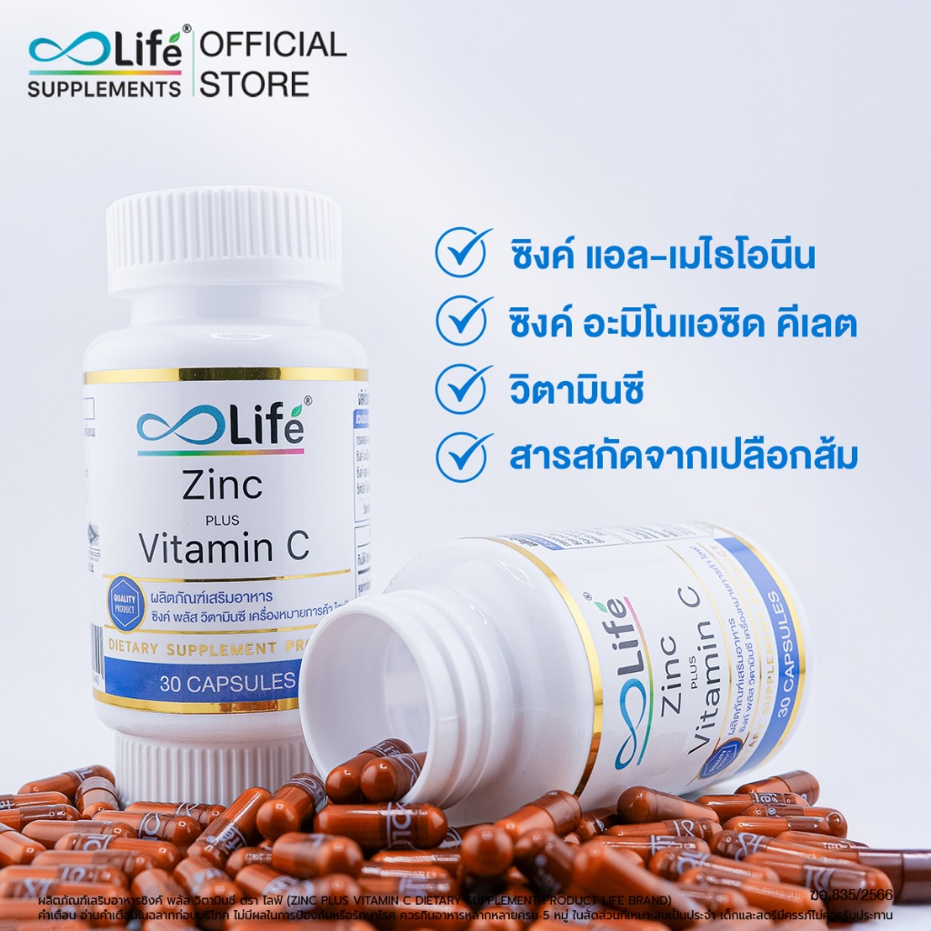 ไลฟ์ ซิงค์ พลัส วิตามินซี Life Zinc Plus Vitaminc ชุด 2 กระปุก [LLAAD_02]