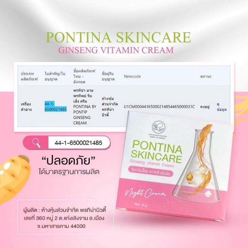 ❗️1แถม1❗️เซตครีมโสมไข่มุก พรทิน่า ครีมโสมไข่มุก+ครีมกันแดดพรทิน่า