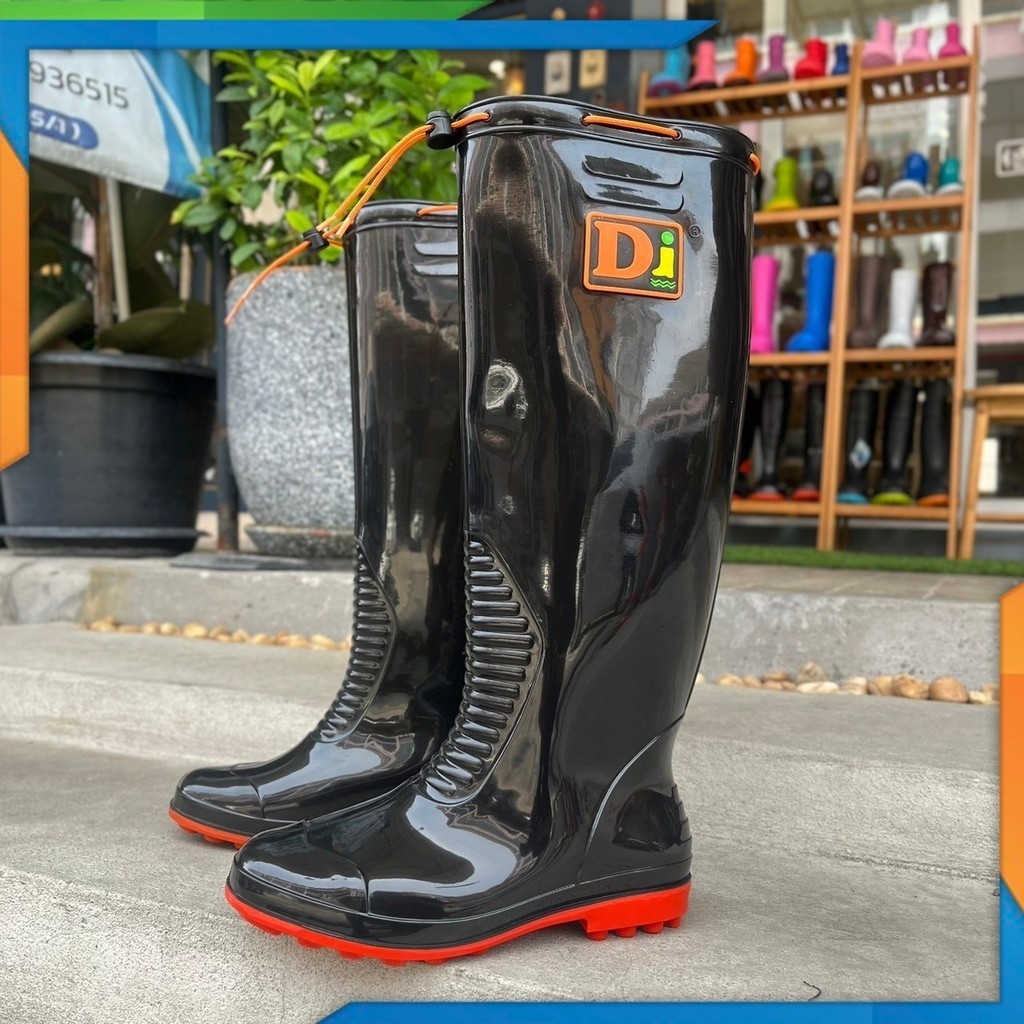 รองเท้าบูทดำ บูทผูกเชือก รองเท้าบูทกันน้ำ รุ่น 1920 บูทสูง 19นิ้ว บูทยาวดำพื้นส้ม