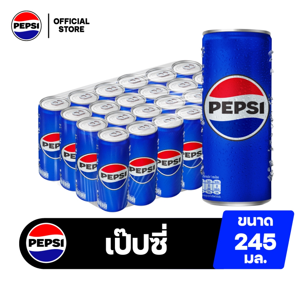 [ส่งในกทม,ปริมณฑล] [แพ็ก24] เป๊ปซี่ น้ำอัดลม กระป๋อง 245มล. Pepsi Cola Soft Drink 245ml Pack 24