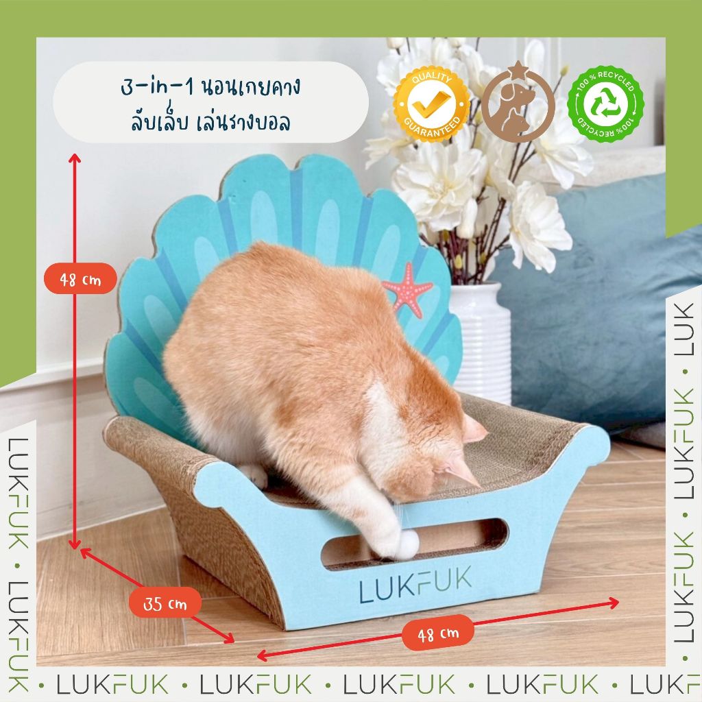 LUKFUK ที่นอนและที่ลับเล็บแมวกระดาษ ขนาดใหญ่ รุ่น “บัลลังก์เชลล์ + รางไข่มุก” (L Carton Cat Scratcher “Shell Throne“)