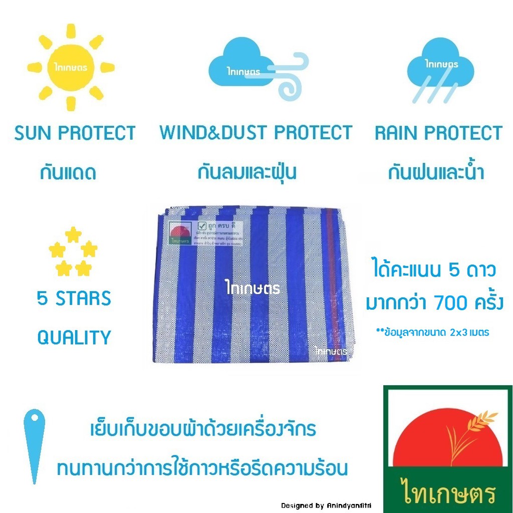 4x6 เมตร ผ้าใบพลาสติกบลูชีท แบบผ้าฟางริ้ว ใช้กันแดด คลุมรถ กันฝน