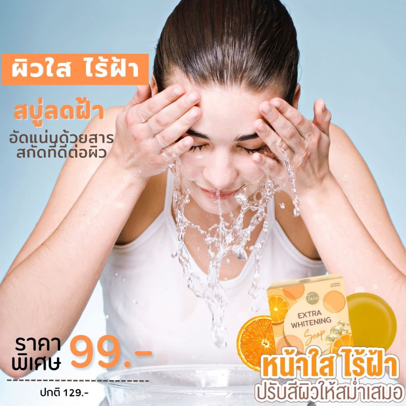 สบู่หน้าใส Extra Whitening Soap ลดฝ้า เผยผิวนุ่มชุ่มชื้น ลดผิวหมองคล้ำ ลดเลือนริ้วรอย จุดด่างดำ