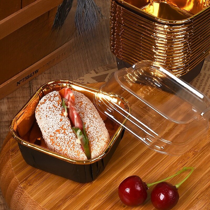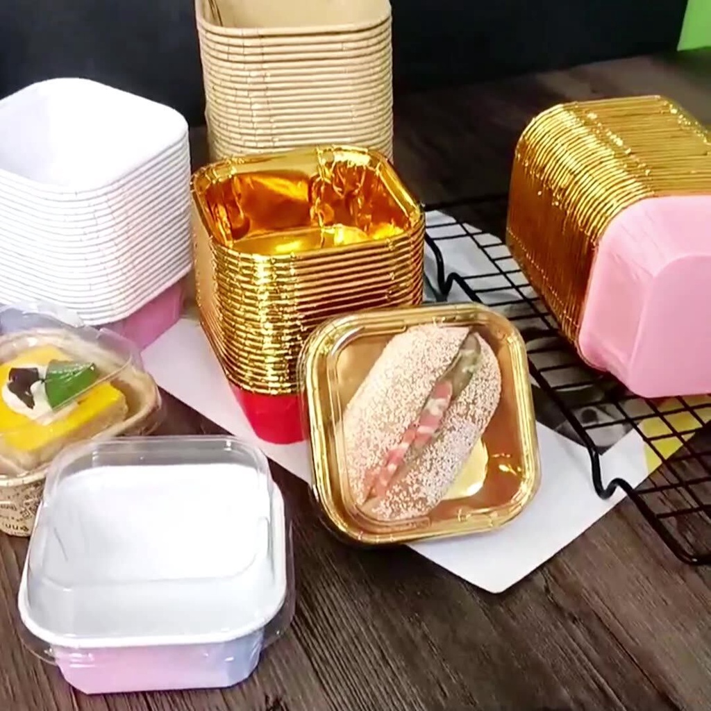 ถ้วยคัพเค้กสี่เหลี่ยมขอบม้วน พร้อมฝา ขนาด 6.5cm. แพคละ 50ใบ ความจุ 180ml. มีหลายสีให้เลือก