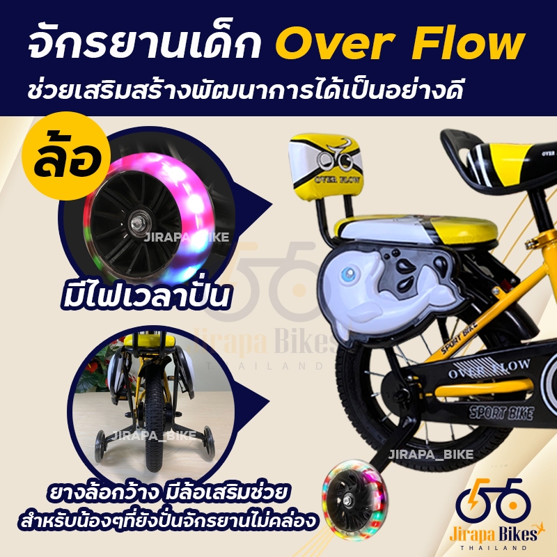 Overflow จักรยานเด็ก 12/16นิ้ว จักรยาน จักรยานเด็ก ล้อยางเติมลม ล้อมีไฟ รถจักรยานเหมาะสำหรับ 2-8ขวบ ฟรี ที่สูบลม+กระดิ่ง