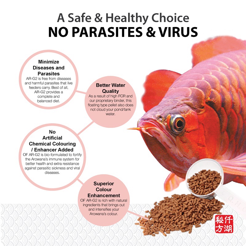 OF Pro Arowana Intense Colour 250 g. AR-G2 (อาหารปลาอโรวาน่าและปลากินเนื้อ สูตรเร่งสี โปรตีนสูง น้ำไม่ขุ่น)