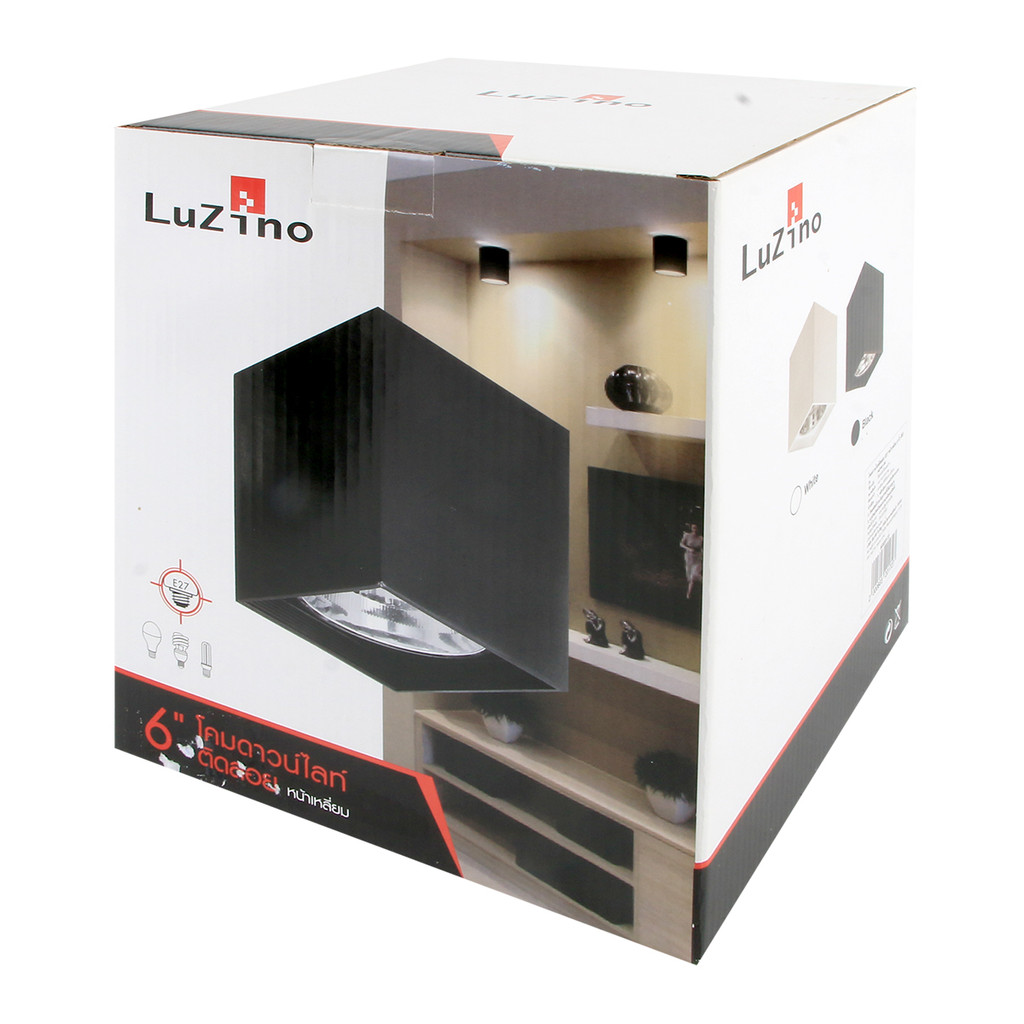 โคมดาวน์ไลท์ติดลอยเหลี่ยม 6 นิ้ว E27x1 LUZINO รุ่น MZF601-BK สีดำ