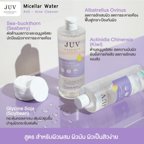JUV Micellar Water Anti- Acne Cleanser 500 ml | สูตรลดสิว