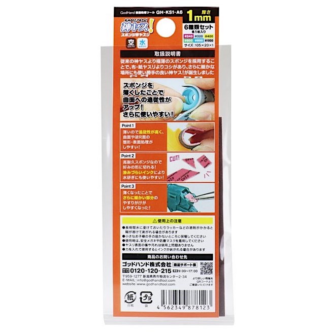 GodHand GH-KS1-A6 กระดาษทรายฟองน้ำ GodHand Sanding Stick ความหนา 1มม.