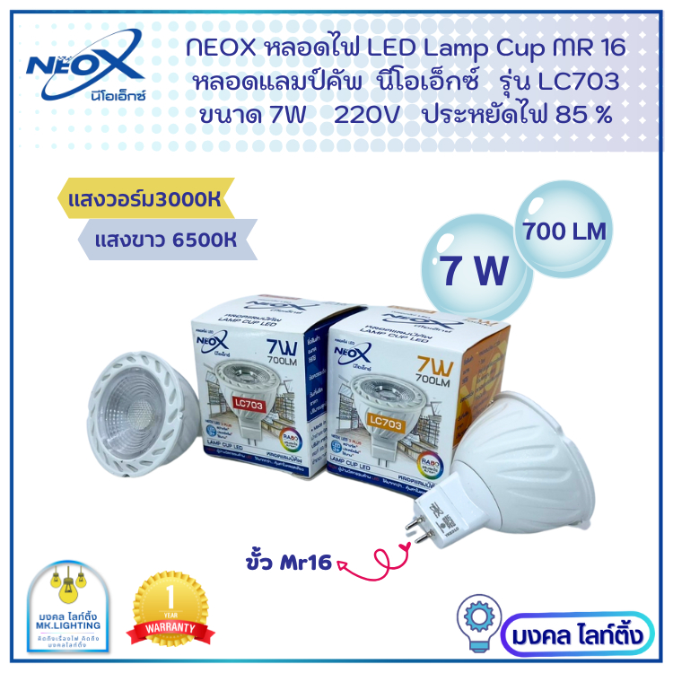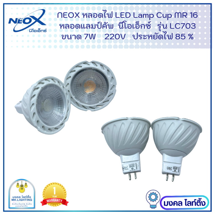 Neox หลอดไฟ LED Lamp cup MR16 นีโอเอ็กซ์ ขนาด 7W 700 LM หลอดฮาโลเจน แบบต่อตรง 220v รุ่น LC703