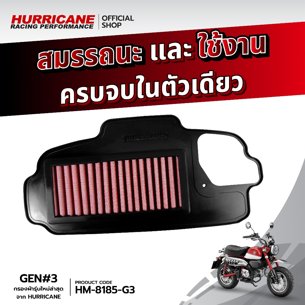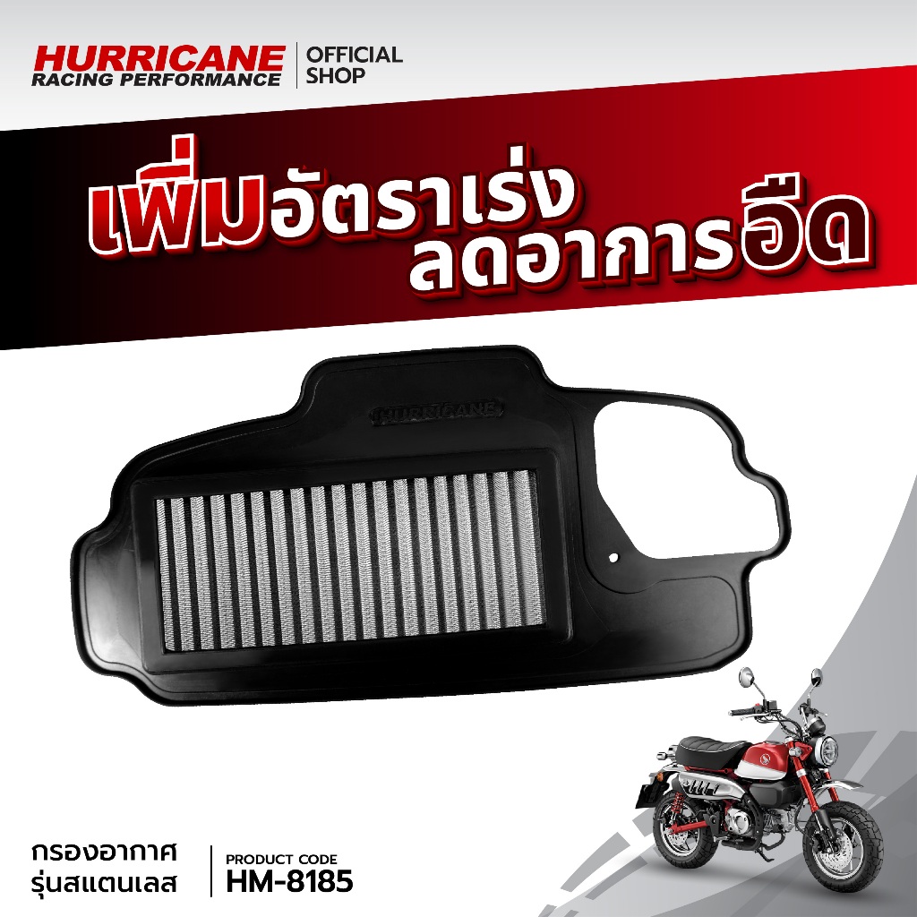 HURRICANE กรองอากาศมอเตอร์ไซต์ผ้าแดง & สแตนเลส Honda Monkey 125 HM-8185