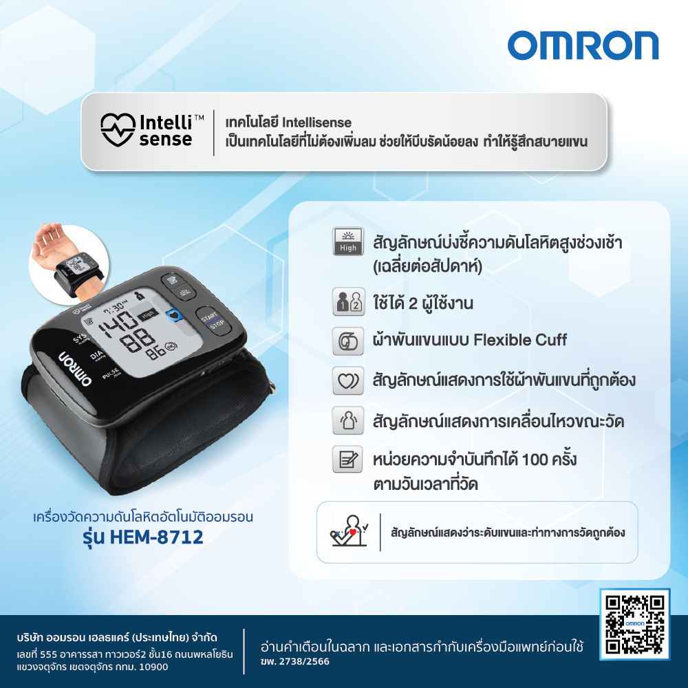 OMRON เครื่องวัดความดันโลหิตอัตโนมัติทางข้อมือ รุ่น HEM-6232T (รับประกัน 3+3 ปี) Blood Pressure Monitor