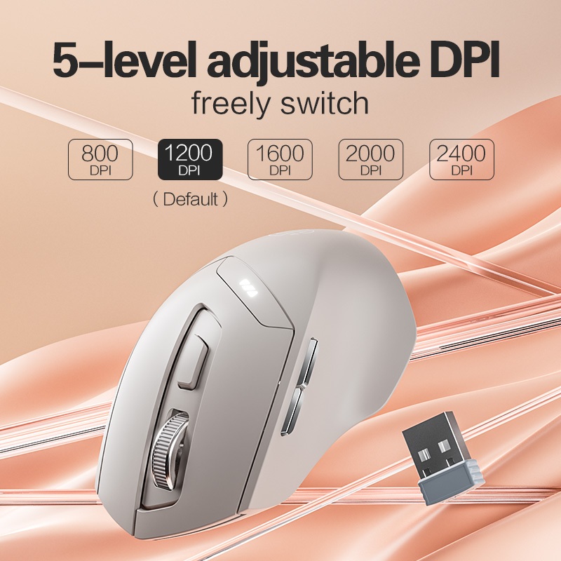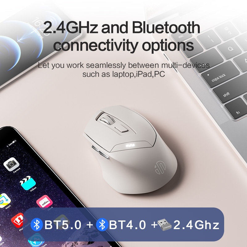 Inphic DR6 เมาส์บลูทูธไร้สาย 2.4G+ บลูทูธ 5.0/4.0 สามโหมด 2400dpi ออกแบบตามสรีรศาสตร์ ไร้เสียง สําหรับ iPad แล็ปท็อป เดสก์ท็อป Mac Android Windows
