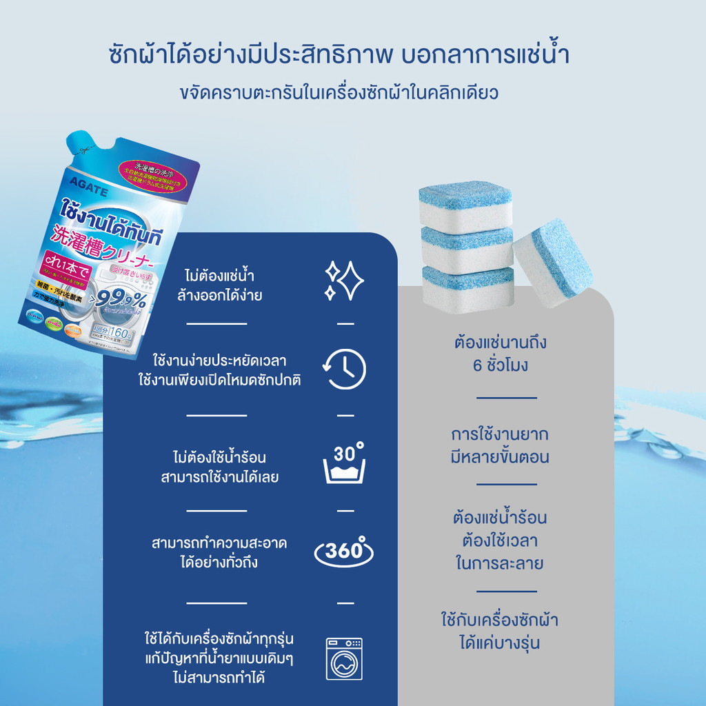 【Agate ของแท้】ผงล้างถังเครื่องซักผ้า ผงล้างเครื่องซักผ้า แบบซอง นำเข้าจากญี่ปุ่น( 160กรัม )