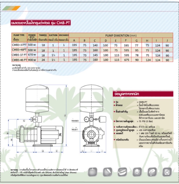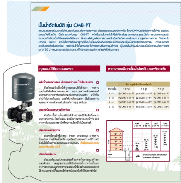 CMB3-37PT แถมขารองปั๊ม ปั๊มอัตโนมัติ Grundfos/ปั๊มน้ำ/Pump