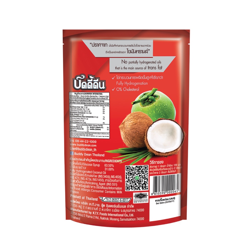 [เซ็ต 3 ถุง] ครีมเทียมมะพร้าว ตราบัดดี้ดีน รุ่น 370 กรัม
