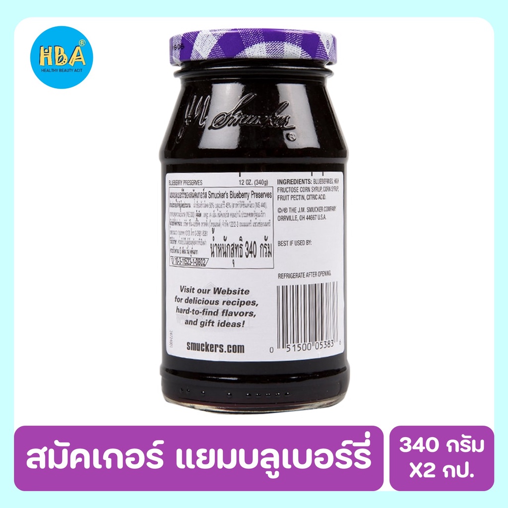 SMUCKER'S สมักเกอร์ แยมบลูเบอร์รี ขนาด 340 กรัม แพ็ค 2 กระปุก