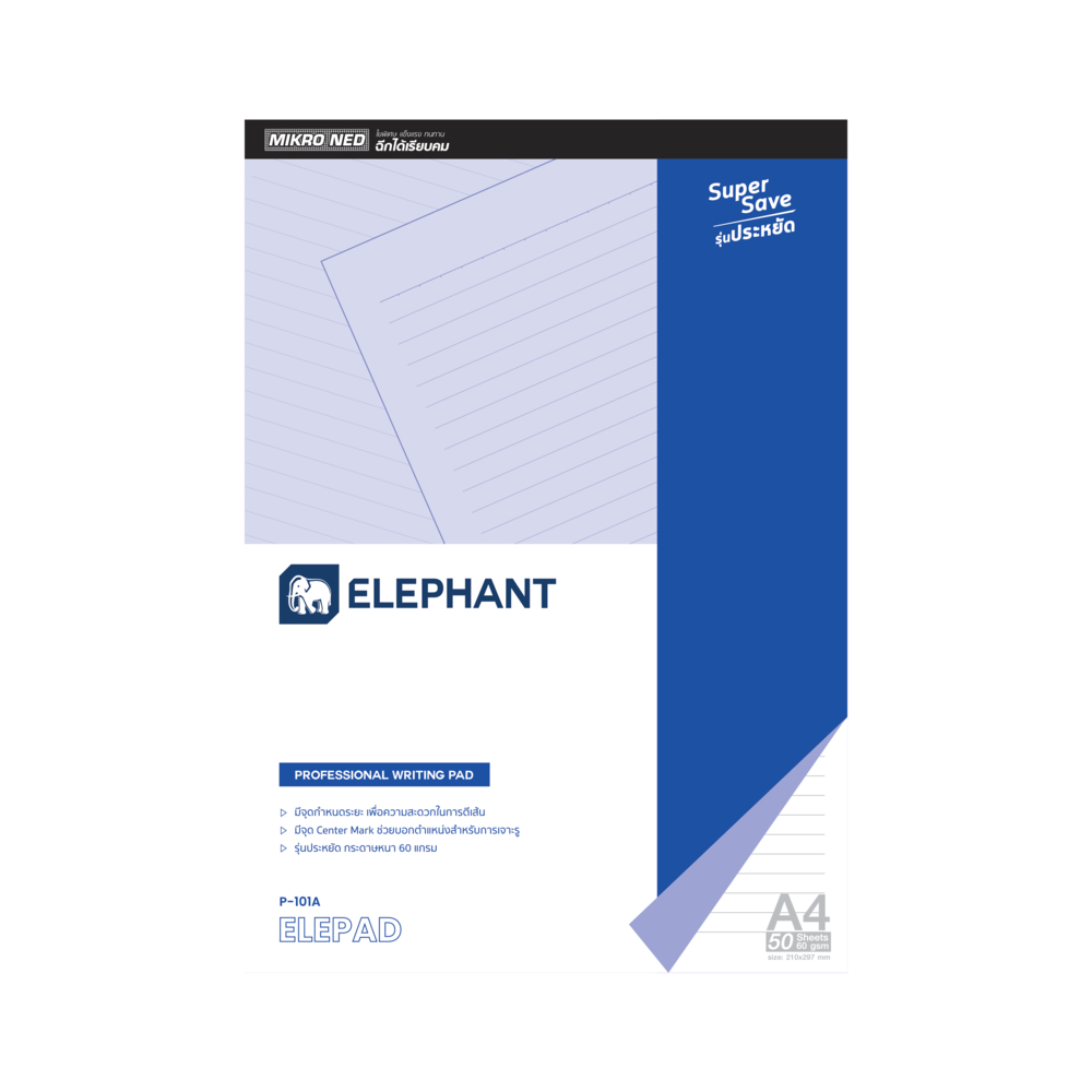 Elephant สมุด สมุดฉีก A4 P-101A 60G 50S เส้นตรง 8 mm. จำนวน 1 เล่ม