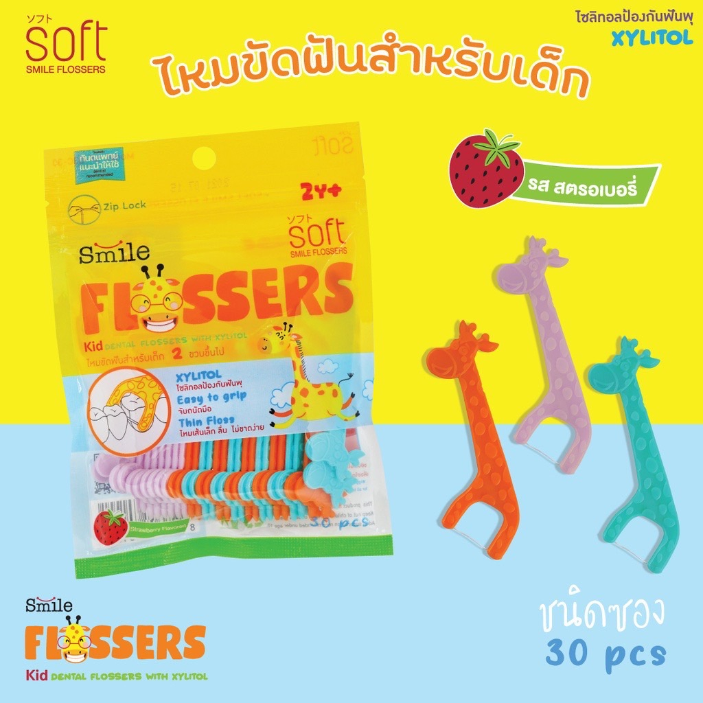 SOFT Smile Flossers ไหมขัดฟันSOFT สำหรับเด็กแบบมีด้ามจับทั้งชนิดซองและชนิดกระปุก ไหมขัดฟันเด็ก