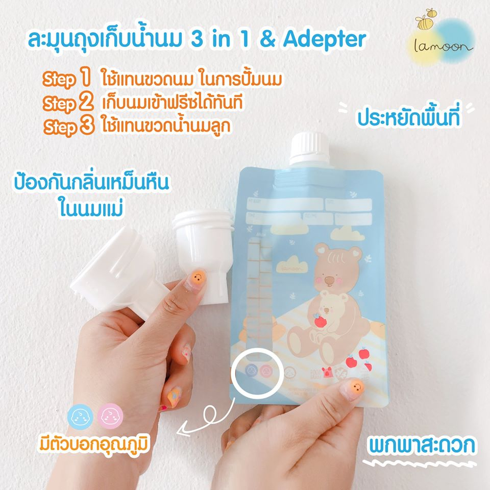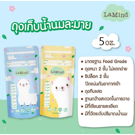 Lamoon Lamind ถุงเก็บน้ำนมแม่ ถุงหนา ลดการเหม็นหืน ไม่รั่วไม่แตก ขนาด 5oz/8oz